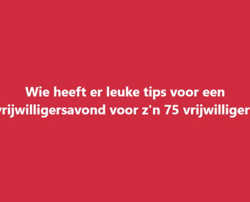 Huub van Dommelen2024-01-17 08:02:152025-07-14 09:49:44Tips voor een vrijwilligersavond voor zo’n 75 vrijwilligers.