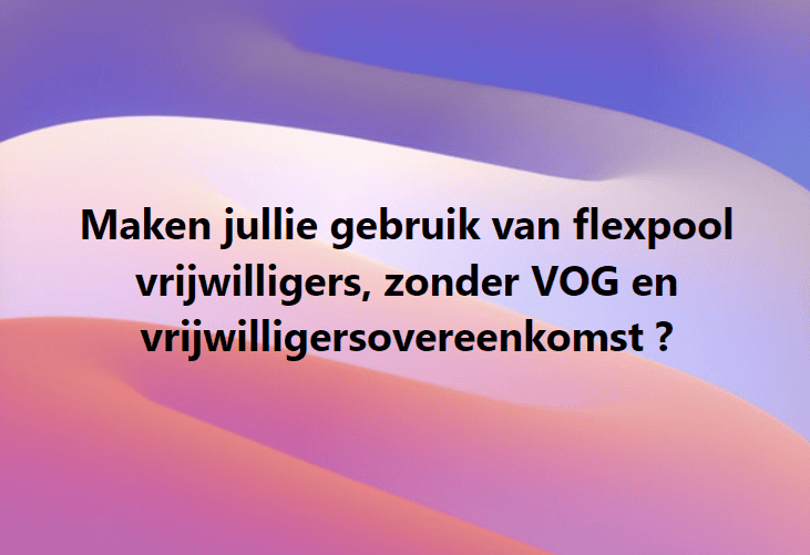 De hele vraag luidde als volgt: ‘maken jullie gebruik van flexpool vrijwilligers, zonder VOG en overeenkomst?’