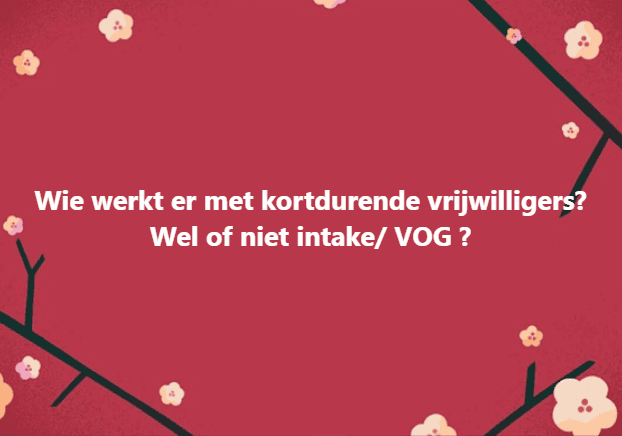 In onze Facebookgroep Vrijwilligerscoördinatie stelde Annet de vraag: “Wie werkt er met kortdurende vrijwilligers? Wel of niet intake / VOG?” Dit zijn de antwoorden van andere leden: