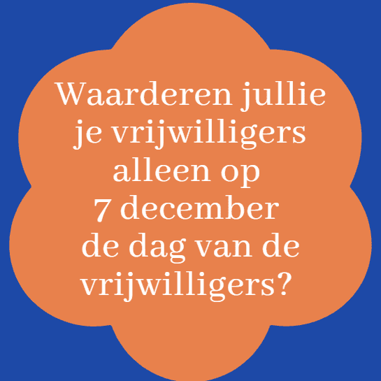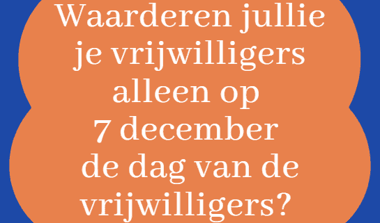 We gaan weer richting de feestdagen en 7/12: dag van de vrijwilliger. Een goed moment om stil te staan bij de vraag: Hoe waardeer je je vrijwilligers? Alleen op 7 december? Antwoorden uit de praktijk: